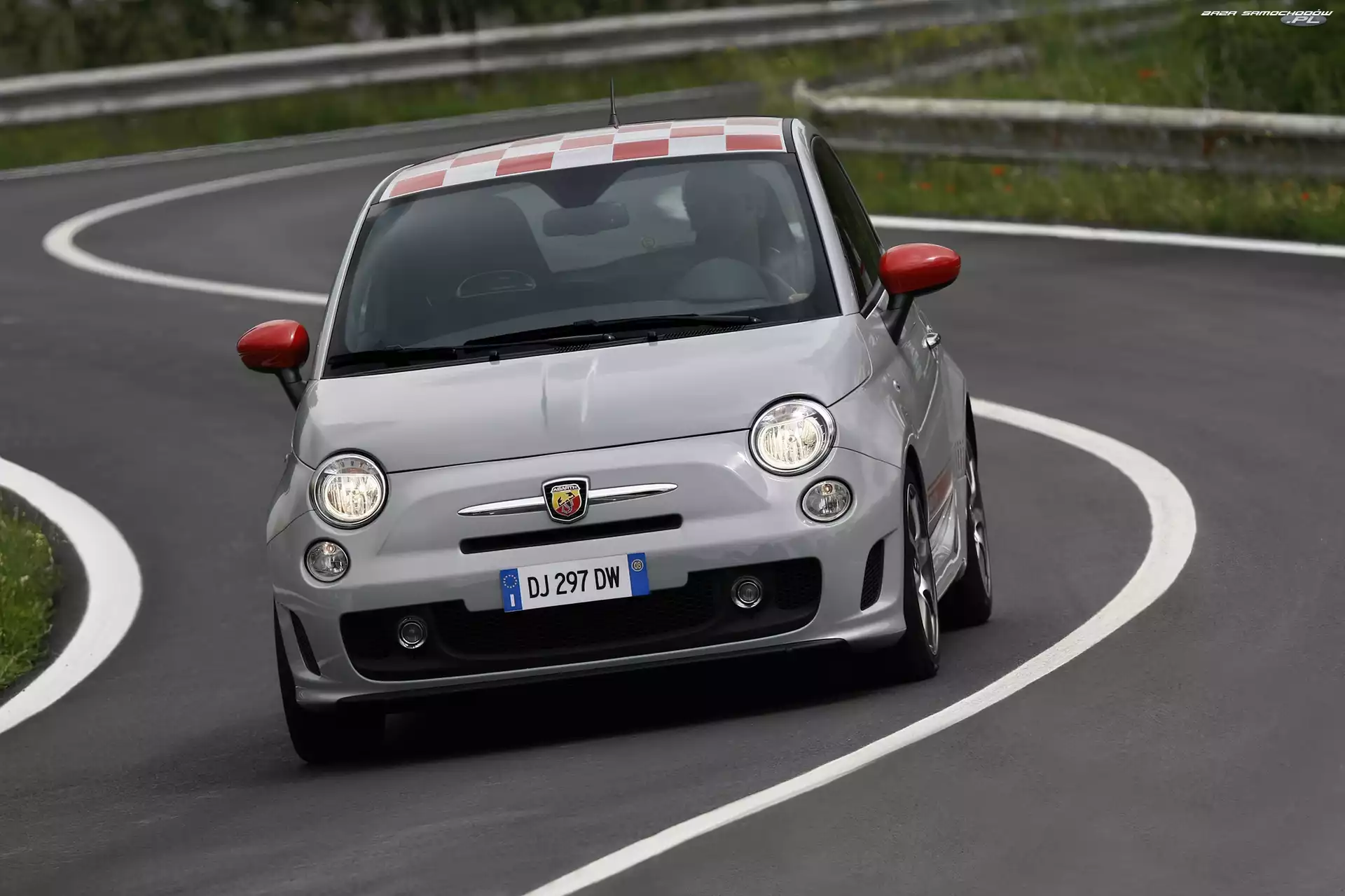 Samochód: Srebrny, Abarth 500, Dach, Szachownica