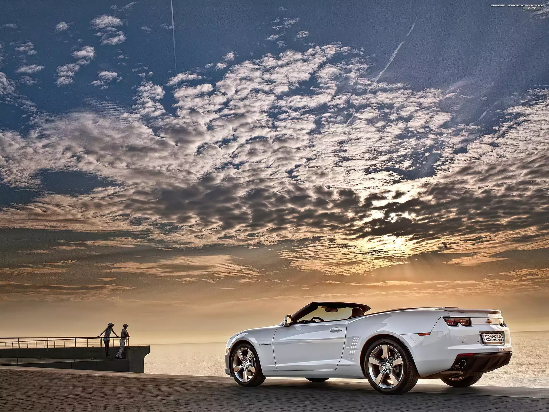 Samochód: Turyści, Chmury, Camaro, Chevrolet, Morze
