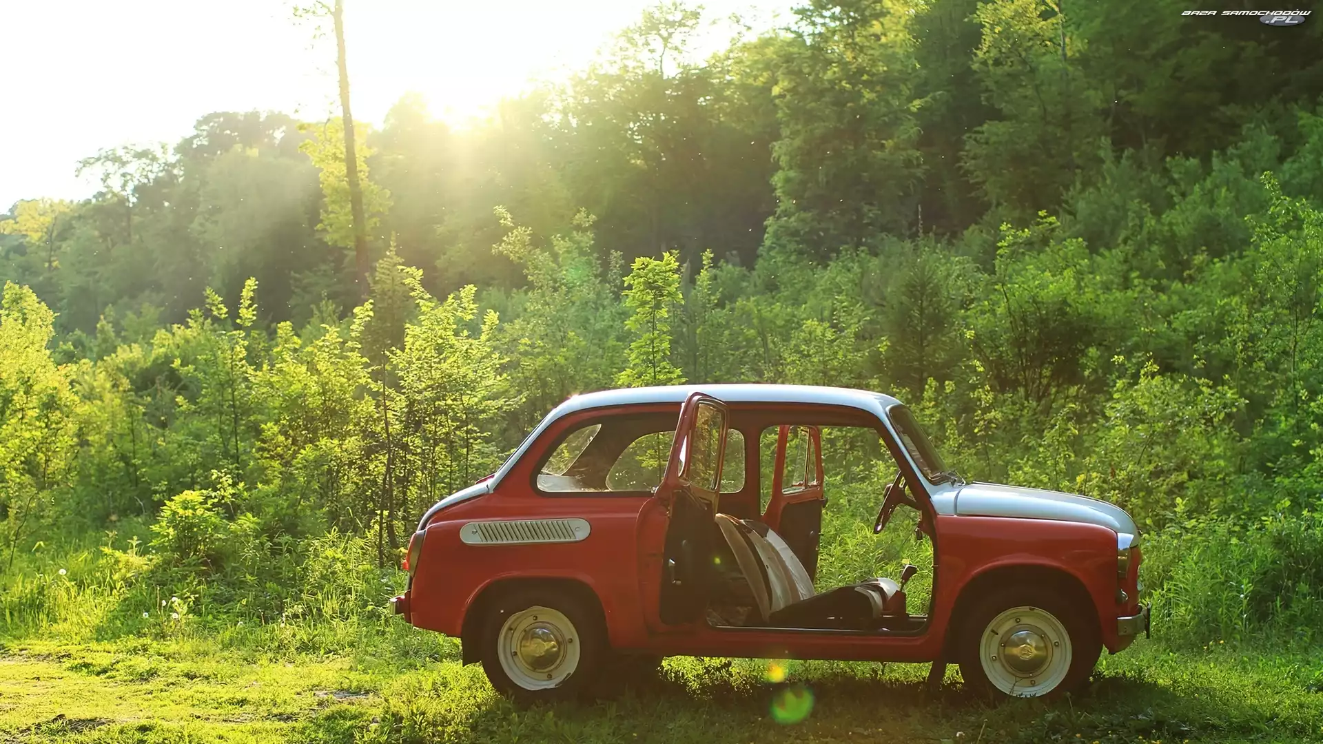 Samochód: Zaporożec, Promienie Słońca, Zabytkowy, Las